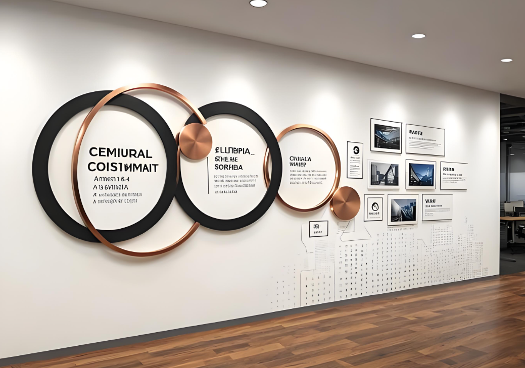 3.合理布局与灯光:确保文化墙设置在人流密集且便于观看的位置,配备适当照明,保证内容清晰可见。